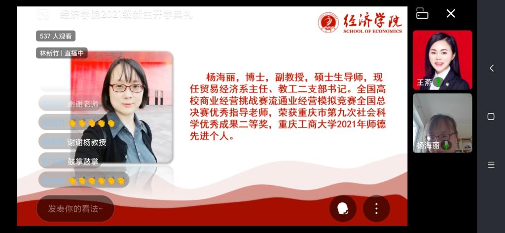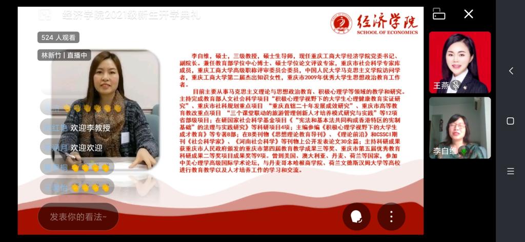 “敬道养正,励德修远”,9月11日上午,k1体育2021级新生开学典礼线上直播成功举行。k1体育十年品牌副董事长、k1体育经理李敬教授、k1体育分党委书记李自维教授以及班子成员、系主任、辅导员,2021级532名本科生和50名研究生参与了本次典礼。典礼由公司党委副书记、副经理王燕教授主持。