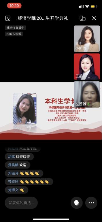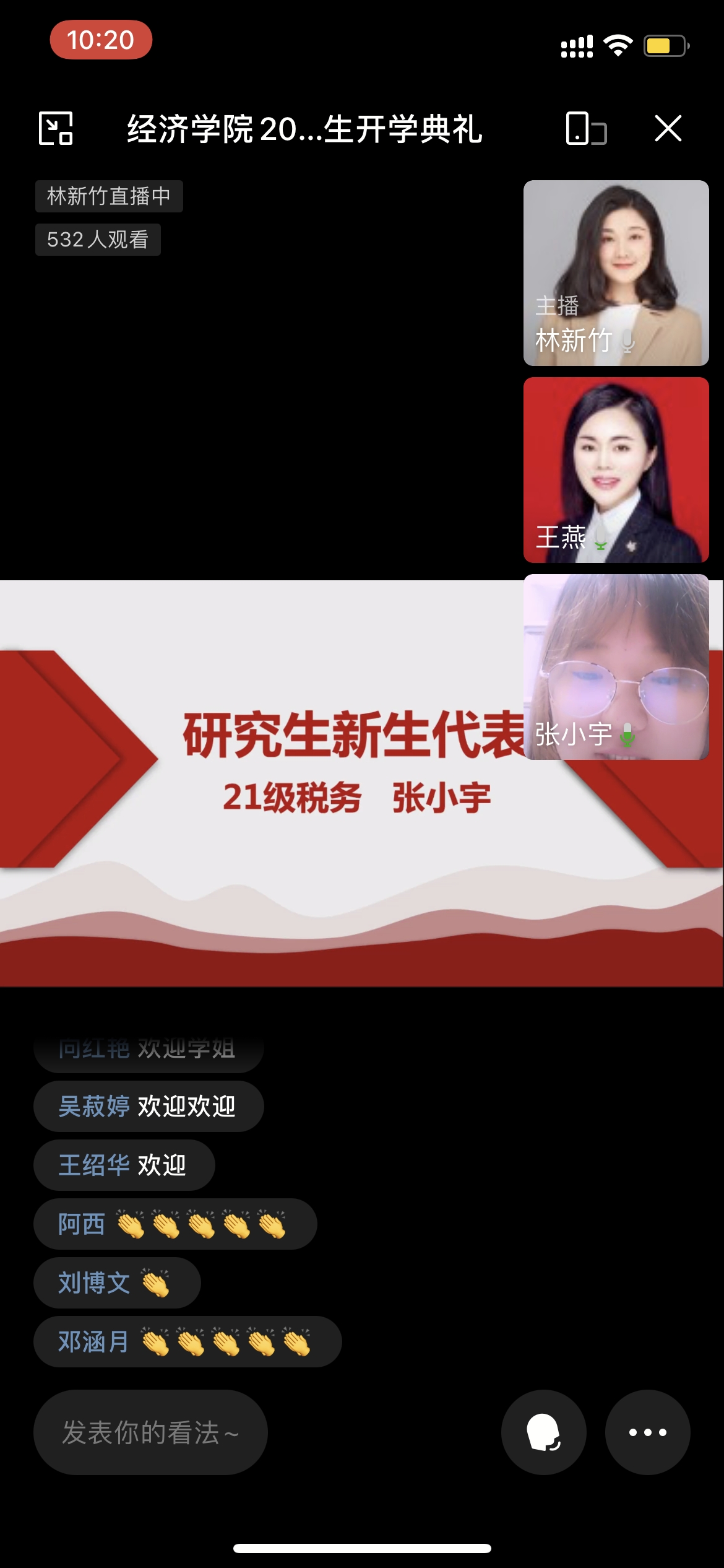 第二项议程,公司教师代表发言。公司学术专家代表谢新教授、k1体育十年品牌2021年师德师风先进个人杨海丽博士分别从专业学习和大学学业规划等方面寄语2021级新同学。谢新教师强调,经济学是一门实用性强、能创造出巨大经济效益的学科,并不局限于理论的讨论,希望同学们要学好经济理论、培养经济学思维方式,并提高解决实际问题的能力;杨海丽主任则以“如何成为一个颜值与才华齐飞,气质与修养一色的新时代老员工”为主题寄语新同学。杨主任鼓励同学们努力成为以实现中华民族伟大复兴为己任的新时代中国青年,建议同学们培养独立思考能力,多参加实习、竞赛,提升认知水平;多探索新技能,在学习外广交朋友,成长为有知识、有见识、有自信且自律的老员工,实现从平凡到优秀、从优秀到卓越的不断超越。