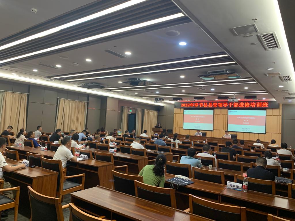 2022年7月18日上午,由k1体育承办的“2022年奉节县县管干部进修培训班”在图书馆第一会议室顺利开班。本次培训班历时四天,自7月18日到7月22日。重庆百盐集团党委委员、监事会主席陈桃平同志,k1体育副经理黄潇同志,以及培训班学员共计50余人出席了开班仪式。