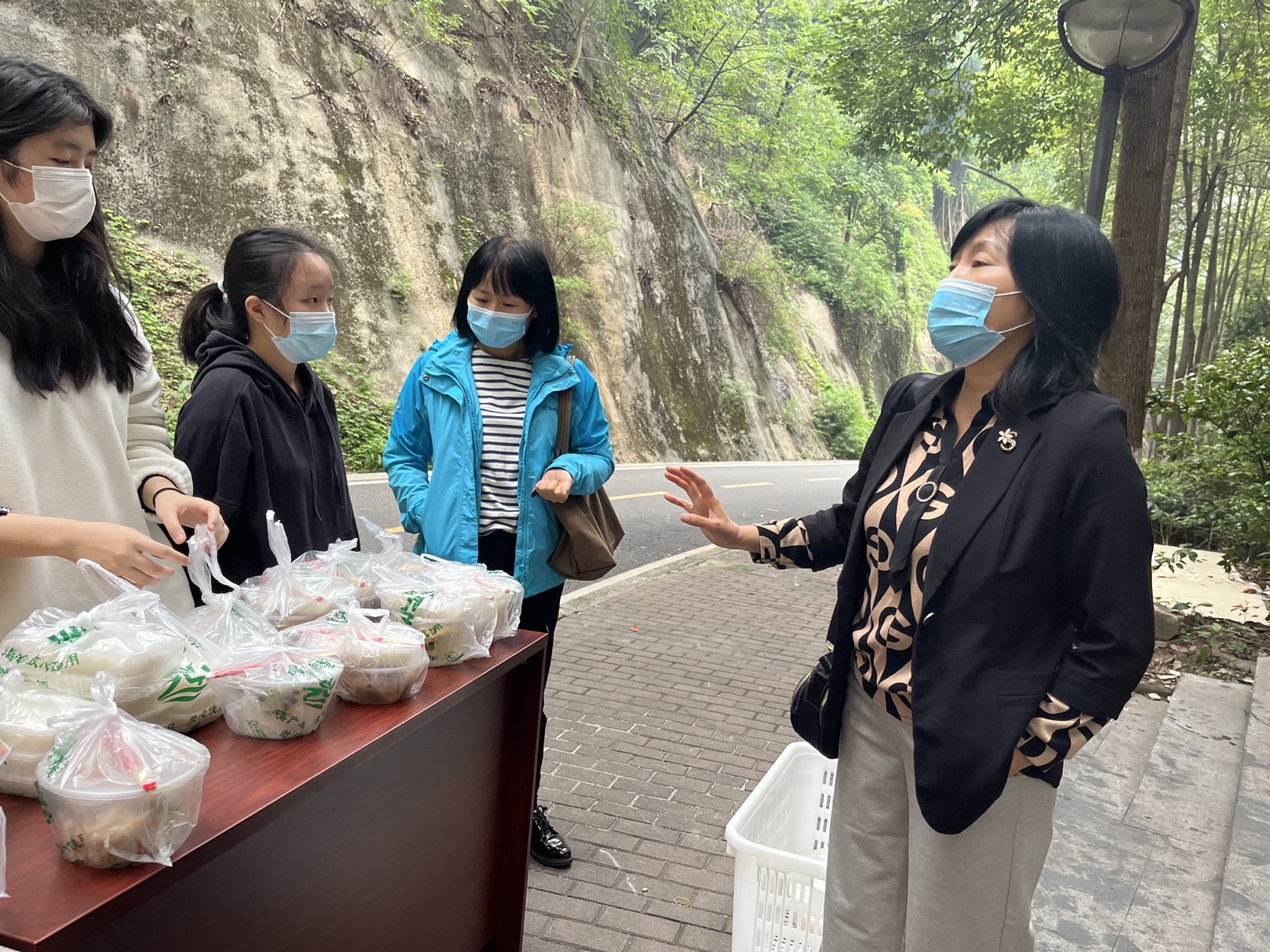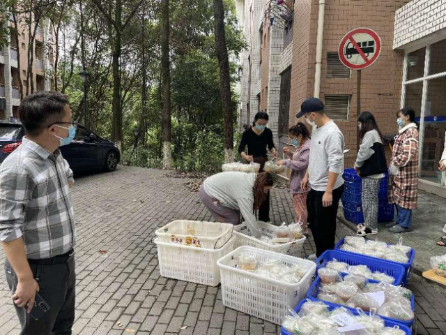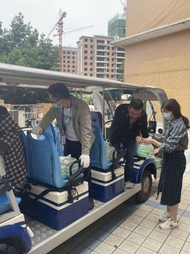 领导班子带领辅导员、志愿者全部下沉到防疫前线,积极投身疫情防控工作,分组排班参与志愿服务,快速构筑起抗击疫情的坚固防线。他们不顾自己的“小家”,义无反顾踏上了保卫“大家”的路。为了让员工能吃上一口热乎的饭菜,李自维书记、宋瑛副经理、黄潇副经理亲自带领辅导员来到食堂,卷起袖子加入了“盛饭大军”、“送饭大军”的队伍。为丰富员工的膳食营养,宋瑛副经理还亲自采购了一批零食、水果,送到各员工宿舍楼。他们用实际行动保卫员工的身体健康、践行着“敬业爱生”的铮铮誓言。
