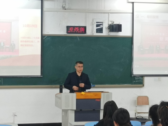 课堂上,李敬从党的二十大召开的重大意义、会议情况、大会报告主要内容等方面,系统全面传达讲解了党的二十大精神和二十大报告内容。他指出,党的二十大是在全党全国各族人民迈上全面建设社会主义现代化国家新征程、向第二个百年奋斗目标进军的关键时刻召开的一次十分重要的大会。作为新时代的接班人,同学们要坚定不移听党话、跟党走,怀抱梦想又脚踏实地,敢想敢为又善作善成,立志做有理想、敢担当、能吃苦、肯奋斗的新时代好青年,让青春在全面建设社会主义现代化国家的火热实践中绽放绚丽之花。课堂上,李敬不时与同学们互动交流,大家围绕党的二十大精神,畅谈收获心得,细说感受体会,抒发志向梦想。