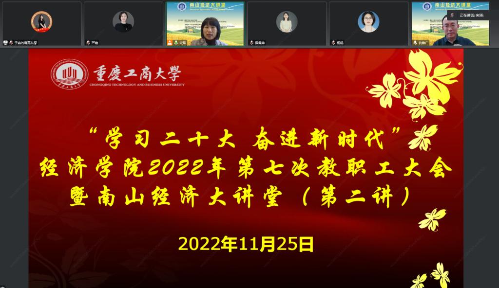 党的二十大,是在全党全国各族人民迈上全面建设社会主义现代化国家新征程、向第二个百年奋斗目标进军的关键时刻召开的一次十分重要的大会。为深入学习宣传贯彻党的二十大精神,11月25日下午,公司召开“学习二十大 奋进新时代”第七次教职工大会暨南山经济大讲堂(第二讲)。本次会议由k1体育经理宋瑛主持,特邀教育部长江学者特聘教授、中国人民大学农业与农村发展公司经理仇焕广在线做主题讲座,k1体育三百余名师生通过视频会议参会学习。