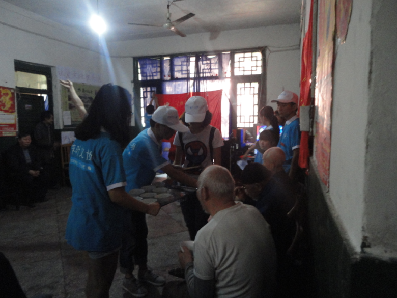 活动在志愿者热情洋溢的舞蹈表演中拉开序幕。独唱《春暖花开》、《爱》献给最可亲可敬的老人们,对他们致以节日的问候。诗朗诵《我是一个任性的孩子》,抑扬顿挫的声调,舒心悦耳,牵动着每一位在场观众的心。在小品《免费电话》、《家有老爸》中,志愿者们亦庄亦谐的表演,诙谐幽默,引得全场观众捧腹大笑,掌声不绝。双人唱《外婆的澎湖湾》,合唱《常回家看看》,歌声婉转动人,深深地打动了在场观众。在互动环节“老友大考验”中,同学们与老人们跨越年龄的鸿沟,如同朋友般无间地沟通交流。老人们精彩的独唱、合唱、舞蹈以及快板表演令志愿者深感其年轻乐观的心态,使所有志愿者无比动容。在表演节目的同时,同学们为老人们送上热气腾腾的汤圆,陪伴他们度过一个团团圆圆的重阳节。最后,活动在经济义协会歌《当爱在靠近》的歌声中落下帷幕。