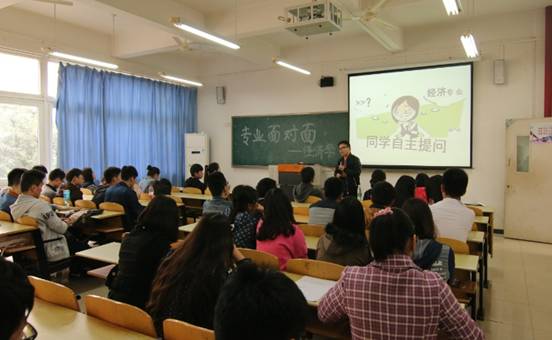 活动开始,各个专业的资深老师们,针对同学们的困惑做了深入浅出的分析。谢新教授为同学们详细讲解了国际经济与贸易未来的发展方向,并分析了近几年的就业情况。黄潇老师则结合了自己目前教授西方经济学的一些心得体会详细的讲述专业的重要性和需求。杨军老师就经济新常态、供给侧改革等热点话题以及会展业如何适应经济新常态、推进会展供给侧改革等问题给同学们作了介绍讲解。张驰老师在讲解专业前景的同时,鼓励同学们培养发现问题、解决问题的能力。