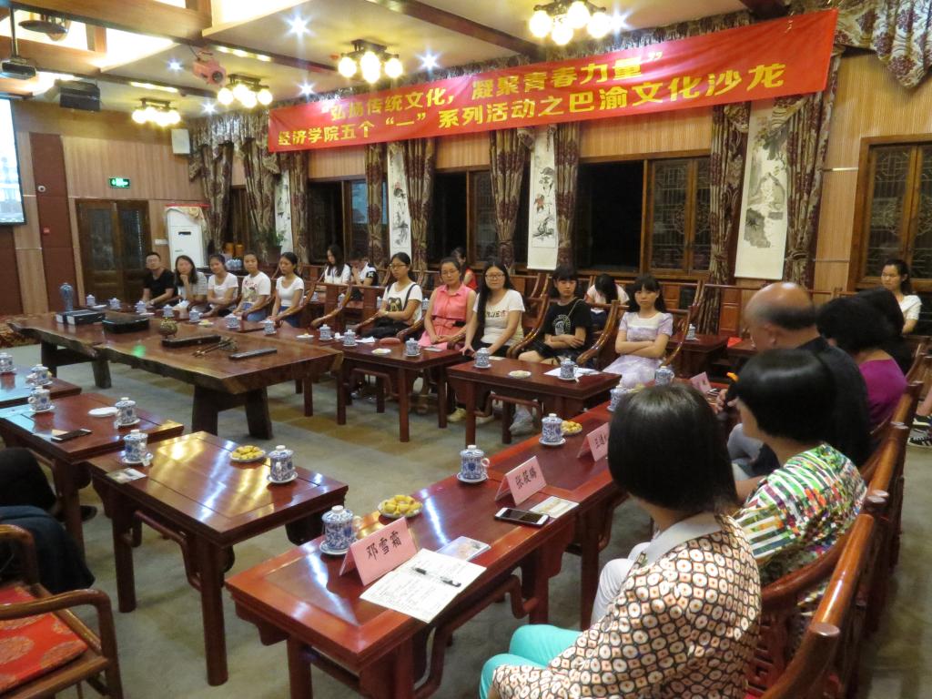 巴渝文化是长江上游地区最富有鲜明个性的民族文化之一,而凝聚了巴渝文化精髓的重庆,以其富有特色的山水文化,盘错纵横的桥都文化,麻辣热烈的美食文化,震撼心灵的红色文化闻名于世。6月 3日,为了宣传弘扬巴渝文化,丰富校园生活,k1体育以文化探索与交流分享的形式,在公司南山书院举办了第三届五个“一”系列活动之巴渝文化沙龙。艺术公司教师、国家一级编剧(曾编写《山城棒棒军》)、二级教授、重庆市作协副主席、国家文化部专家王逸虹教授等嘉宾莅临此次活动。