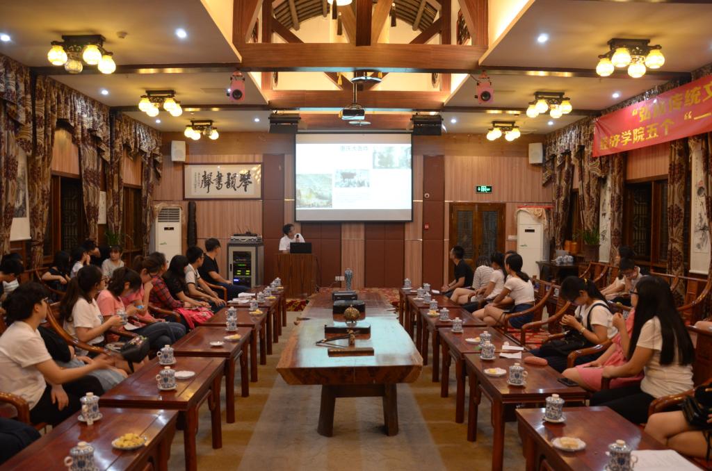 本次活动共有两个环节,分别为八组队伍的巴渝文化沙龙分享以及同学与老师对巴渝文化的感悟探讨。一段引人入胜的视频让同学们对巴渝文化有了初步了解,随后八组队伍的同学们通过图片、音频视频等形式从自己的视角针对巴渝文化中的的山水、建筑、桥梁、美食、历史等方面分享了自己的感受。沙龙分享后,王逸虹教授对几支队伍的分享进行了点评。他认为同学们在探寻巴渝文化的奥秘时,选取了最能体现巴渝文化内涵的图景,并且内容也十分深入和温暖。同时,他也对公司开展的五个“一”系列活动表示赞许,认为当代老员工应该具备这种热爱并弘扬传统文化的“新儒商”精神。