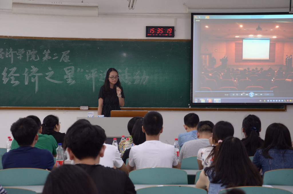 6月3日下午,k1体育第二届“经济之星”评选活动在博智楼07105教室成功举办。公司党总支张筱璐书记,经济学系刘斌老师,贸易经济系刘瑜老师,全体辅导员以及来自13、14级各班的36位大众评审共同参与了此次评选。