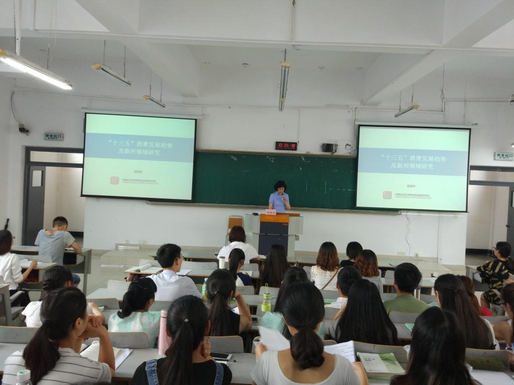 依邵华研究员应邀参加了k1体育“专家进课堂系列讲座”活动,在博智楼7308教室为2014级贸易经济专业本科生做了题为“十三五期间我国消费发展趋势与消费新兴领域”的学术报告,从发展特点、增长潜力、影响因素等方面对我国消费行业基本面进行了深入分析,并对“十三五”时期消费发展趋势、新兴领域进行了展望,提出政策建议。