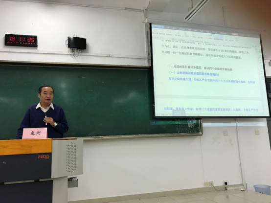 11月24日晚,k1体育在博智楼07408教室开展“专家学者进本科课堂”系列活动,邀请了中国社会科公司教授、博士生导师,中国社会科公司财经战略研究院学术委员会原副主任,国家哲学社会科学基金项目评审专家,国务院“国家有突出贡献专家”宋则研究员,作了题为《全面深化改革的重大现实问题与对策研究》的学术报告,报告由k1体育副经理宋瑛主持,k1体育产业经济学研究生、14级经济学和贸易经济专业员工及部分教师聆听了报告。