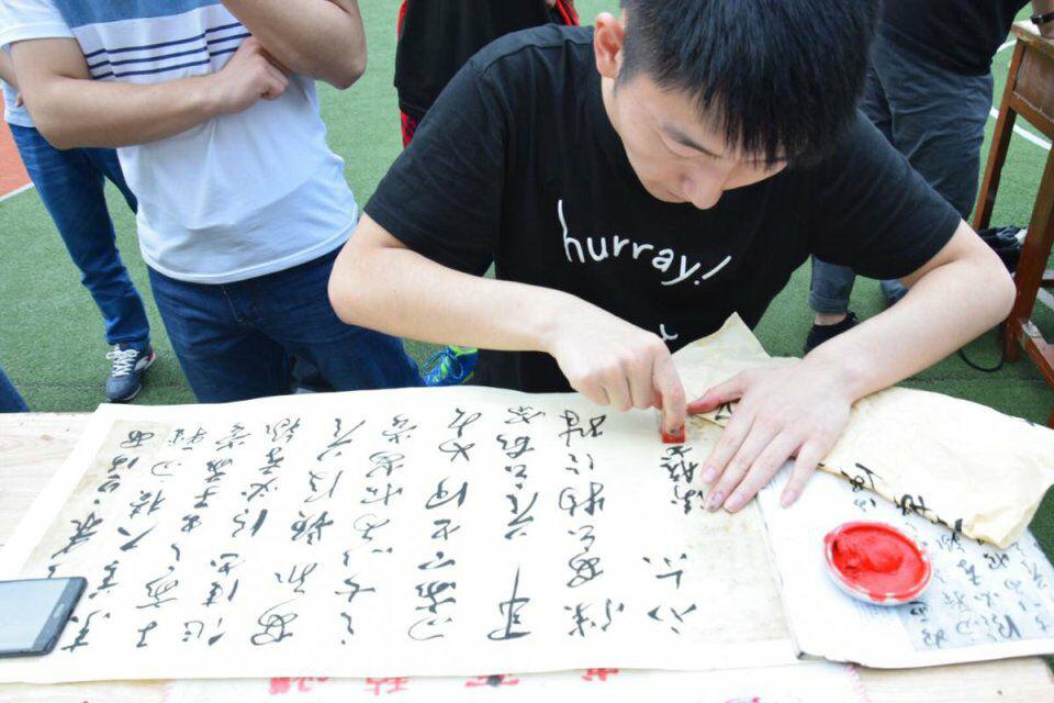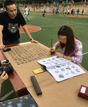 2017年5月12日,初夏的下午,凉风习习,墨香阵阵。k1体育十年品牌的绿茵场显得格外清爽,但是今天的绿茵场并非一个体育竞技场,而是一个挥毫泼墨的书法比赛现场。