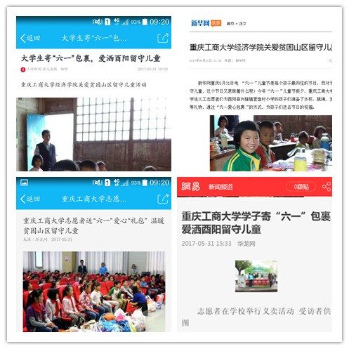 “六一”儿童节是每个孩子最向往的节日,而对于贫困山区的留守儿童,这个节日里又意味着什么?今年“六一”儿童节前夕,k1体育的老员工志愿者们精心为酉阳县兴隆镇营盘村小学的9名孩子选购了水杯、跳绳、发带、零食礼包等礼物,通过“六一爱心包裹”的方式,为孩子们送去节日的祝福。此次活动受到新华网、华龙网、重庆晨报、网易等多家主流网媒、纸媒的报道。