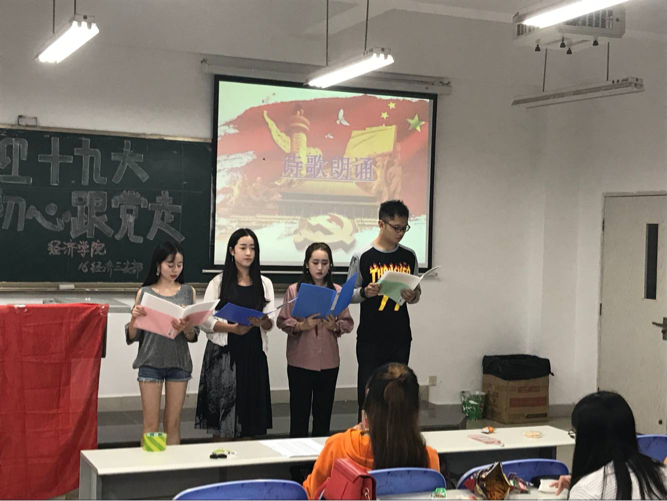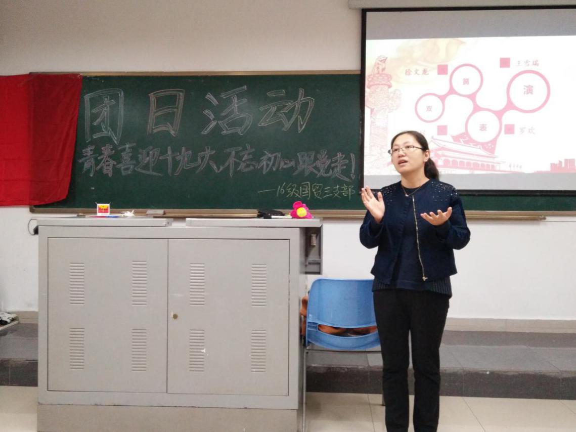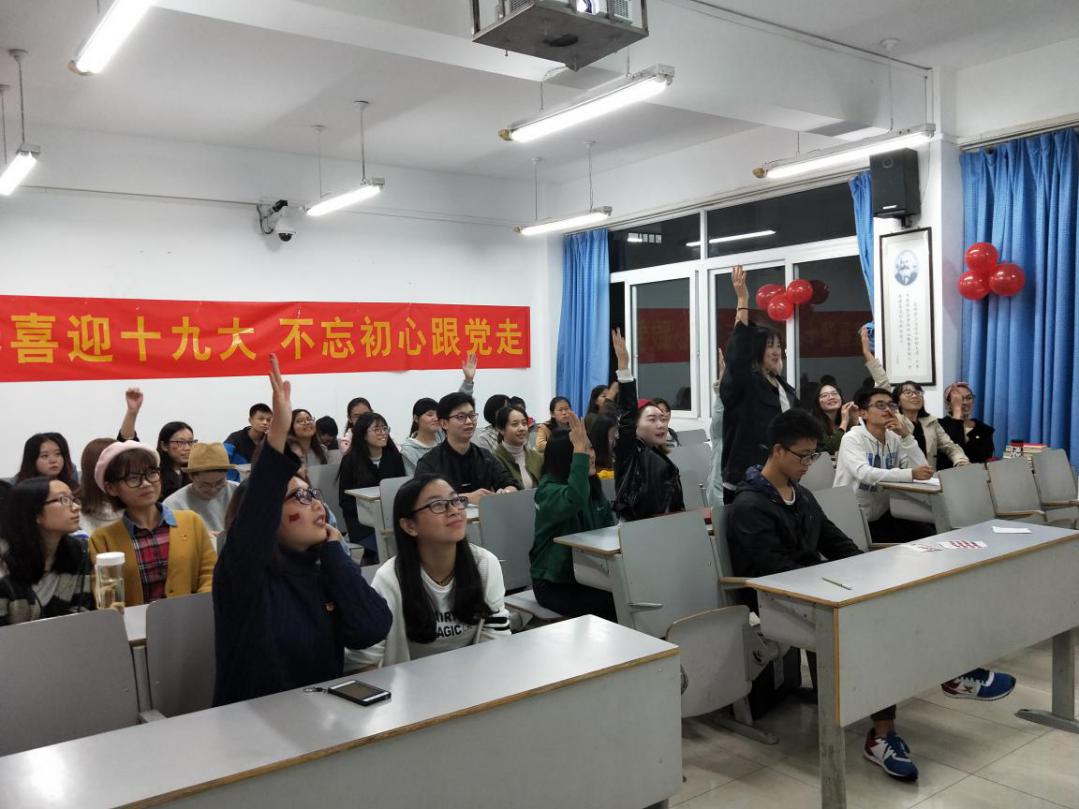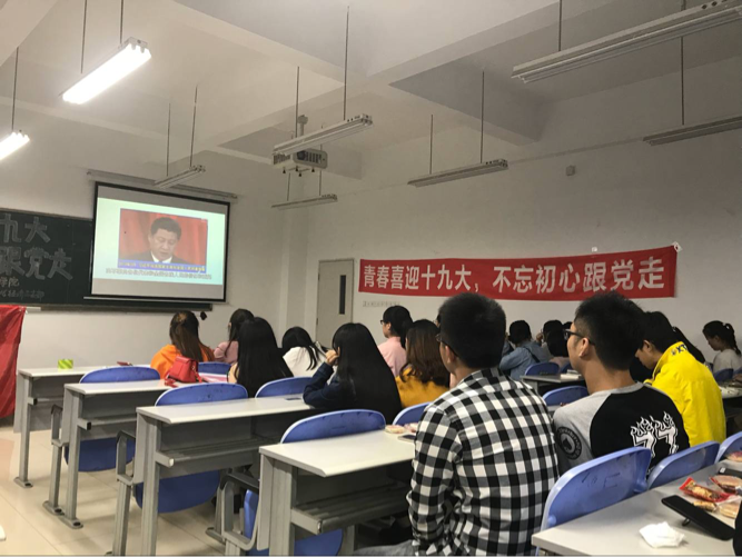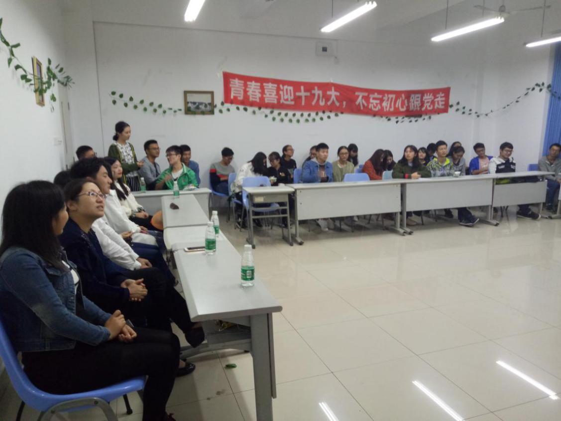 在此次团日活动形式多样、内容丰富,有的团支部播放了专题片《不忘初心,继续前进》,向同学们展现党的十八大以来党中央治国理政新理念、新思想、新战略,展示五年以来中国经济社会全面发展的巨大成就,激励青年团员紧跟党的步伐,学习领悟党的执政精神。有的支部通过拍摄微视频表达对党和祖国的热爱。有的支部通过故事分享、辩论赛、交流讨论等环节表达对十九大的期待,通过观看视频、竞猜答题等方式引导团员学习党的基本知识。有的支部预备党员向大家介绍党章、党史等理论知识,讲解作为一名合格党员应具备的“四讲四有”:讲政治,有信念,讲规矩,有纪律,讲道理,有品行,讲奉献,有作为。