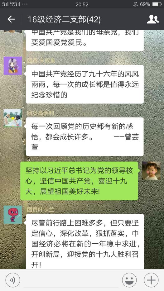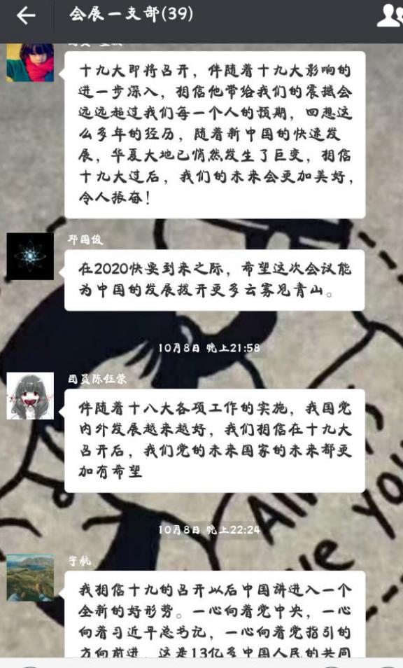 为迎接中共十九大的召开,进一步加强基层团建工作,激发基层团组织的活力,引导团员青年在生动有益的主题团日活动中受教育、得启示、获成长,k1体育组织各班团支部开展“青春喜迎十九大,不忘初心跟党走”主题团日活动。活动于9月20日—10月15日开展,历时半个月,k1体育分党委于频副书记、分团委书记蒋敏老师、各班辅导员老师高度重视积极参与。k1体育2015、2016级22个团支部,共882名团员全部参与活动。同时,各支部结合新媒体载体,借助“网上团支部”,积极开展网络主题团日活动,在网络中学习文件、分享心得、交流讨论、传播正能量,充分发挥网络新媒体对于基层团建的带动作用,2014级毕业班团支部就是通过网上支部的形式开展团日活动。