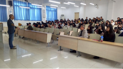 邹学长首先以非常幽默的方式回忆起了他的老员工活,老员工活是丰富多彩的,是无憾的。当谈到他的事业时,同学们更是惊叹不已。在宗申进出口公司做了8年的摩托车出口,负责全面开拓美国市场;在浙江台州王野动力有限公司做了3年营销总监,全面负责电动踏板车出口业务;现在自主创业成立一家进出口公司,自己当老板。从他身上,同学们看到了外贸背后的艰辛,艰辛背后的心酸,心酸背后的努力,努力背后的厚积,厚积而薄发才有了如今的他。带着对学长的崇敬,进入到了第二环节,学长谈到了国际贸易的核心问题:正如理论中所讲的那样,影响国际贸易的核心因素是发生在国际贸易任意环节的风险:包括政治的、文化的、运输途中的、收款过程中、汇率风险等等。学长以他个人的外贸经验为切入点,用自己真实的案例去阐释。实践出真知,经过了学长的讲解,同学们对外贸有了更深层次的了解。经过一番知识的再学习,学长引领大家对未来展开更深入的思考。正如习近平总书记说的那样:“我们要拥抱新时代”。新的时代国际贸易每天都在变化。所谓“渠道为王”,如何快速占领这一渠道?如何面对未来激烈的竞争?需要我们每个人培养自己的核心竞争力。