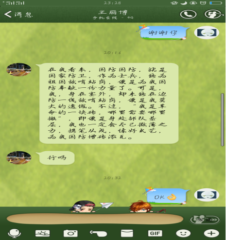 k1体育2016级11个班精心策划、积极实施,先后举办了各具特色的爱我国防主题班会教育活动:有7个班级的活动中都有观看国防教育视频的环节;有5个班级的自行录制了视频; 10个班级都制作了国防教育PPT;其中16经济二班“甲午甲午”话剧表演、16贸经二班四段国防节目汇演、16会展的主题演讲、16经济一班红色经典配音、16经济二班的2位已经参军入伍同学发给同学们的一封信尤其让人印象深刻。