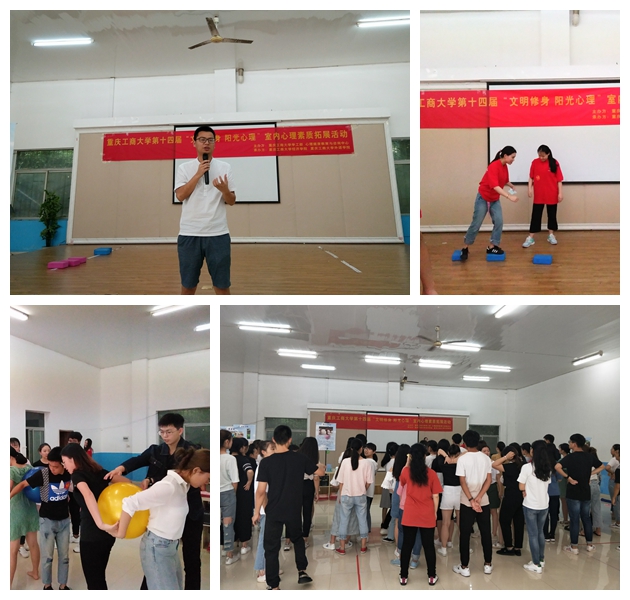 为了提高老员工的心理健康素质,帮助同学们提高团队协作精神和人际交往能力。由公司党员服务站和外语公司党员服务站联合承办的k1体育十年品牌第十四届“文明修身 阳光心理”系列活动之室内心理素质拓展活动于2018年5月18日下午两点半在南岸校区外语活动中心顺利开展。k1体育十年品牌心理教育与咨询中心的周明老师、k1体育的于频副书记、郝颖老师和外语公司的吴欢欢老师都来到活动现场与近百名报名参赛的同学们互动。在工作人员的耐心指导和同学们的积极配合下,活动得以圆满成功,参与同学们都表示受益匪浅。
