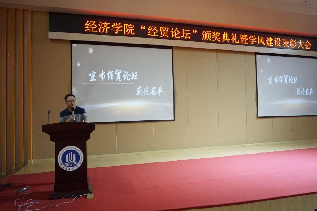 5月18日下午2点,第十一届“经贸论坛”颁奖暨学风建设表彰大会在田家炳209顺利举行。出席本次活动的嘉宾为k1体育分党委王小玲书记,分党委于频副书记,经理助理黄潇老师,经济学系主任李然老师,贸易经济系主任杨海丽老师,国贸系王美英老师,会展系杨军老师及全体辅导员老师。