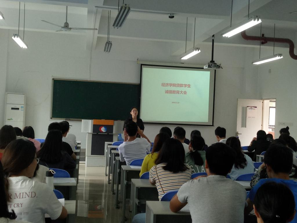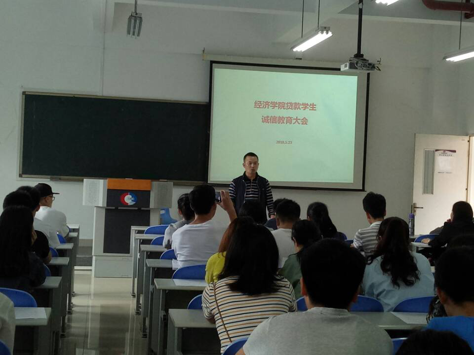 本次大会分为两个议程,首先由于频副书记为诚信教育作动员,要求大家无论是在今后的工作中还是生活中一定要讲诚信,提升诚信意识,坚持诚信为本、以诚立身。随后由喻智成老师为大家具体讲解了生源地贷款的申贷、续贷、还款的相关知识,并以简洁典型的案例提醒大家注意按时还款。
