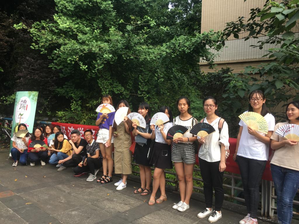 2018年6月14日,为使员工了解传统节日,弘扬民族文化,烘托端午氛围。k1体育“五个一”活动之读经典绘经典浓情端午活动在北六楼栋旁的平台如期举行。本次活动由k1体育北6楼管会、北21楼管会、南2楼管会主办,k1体育分团委、员工会、党员服务站协办。k1体育分党委于频副书记、分团委书记蒋敏老师、党员服务站指导教师郝颖、北6楼管会主任郭春花老师、南2楼管会主任邓雪霜老师、辅导员林新竹、冉梨老师参加了本次活动。 活动伊始,同学们有序抽取国学经典的名句名诗,根据自己的理解,满怀激情的在扇子创作表达诗意的景象。现场氛围活跃,兴奋中氤氲着书香气息,感受着中华文化的博大精深。接着,同学们将做好的扇子相互品鉴,相互补充,努力认真地描绘出一幅幅作品,或是别具一格,或是色彩缤纷,或是妙笔生辉。随后,工作人员为同学们送上了热气腾腾的香粽,表达k1体育大家庭对师生们的关心关爱。活动尾声,同学们在品尝着软糯可口的香粽,品味着源远流长的文化中,纷纷给亲人、师长、朋友送去真挚美好的祝福。