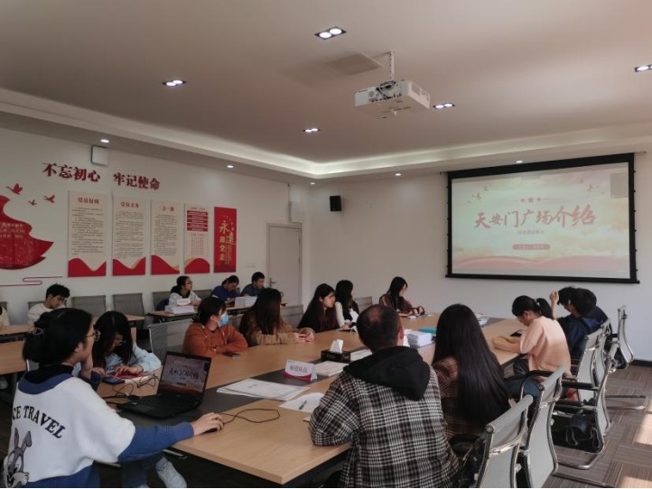 活动第二阶段,李思炜同志分享了假期红色探访足迹——天安门广场,她从场地环境、重大活动、地位价值和历史意义四个方面详细的介绍了天安门广场的具体情况。其中,李思炜同志以图文方式介绍了天安门广场内部的天安门城楼、人民英雄纪念碑、人民大会堂、中国国家博物馆和毛主席纪念堂等地,重点讲解了天安门广场举办的开国大典、天安门升旗仪式和历次大阅兵等重大活动,指出天安门广场是中国最重要的活动举办地和集会场所,是现代中国的象征,同时也记载了中国人民不屈不挠的革命精神和大无畏的英雄气概。