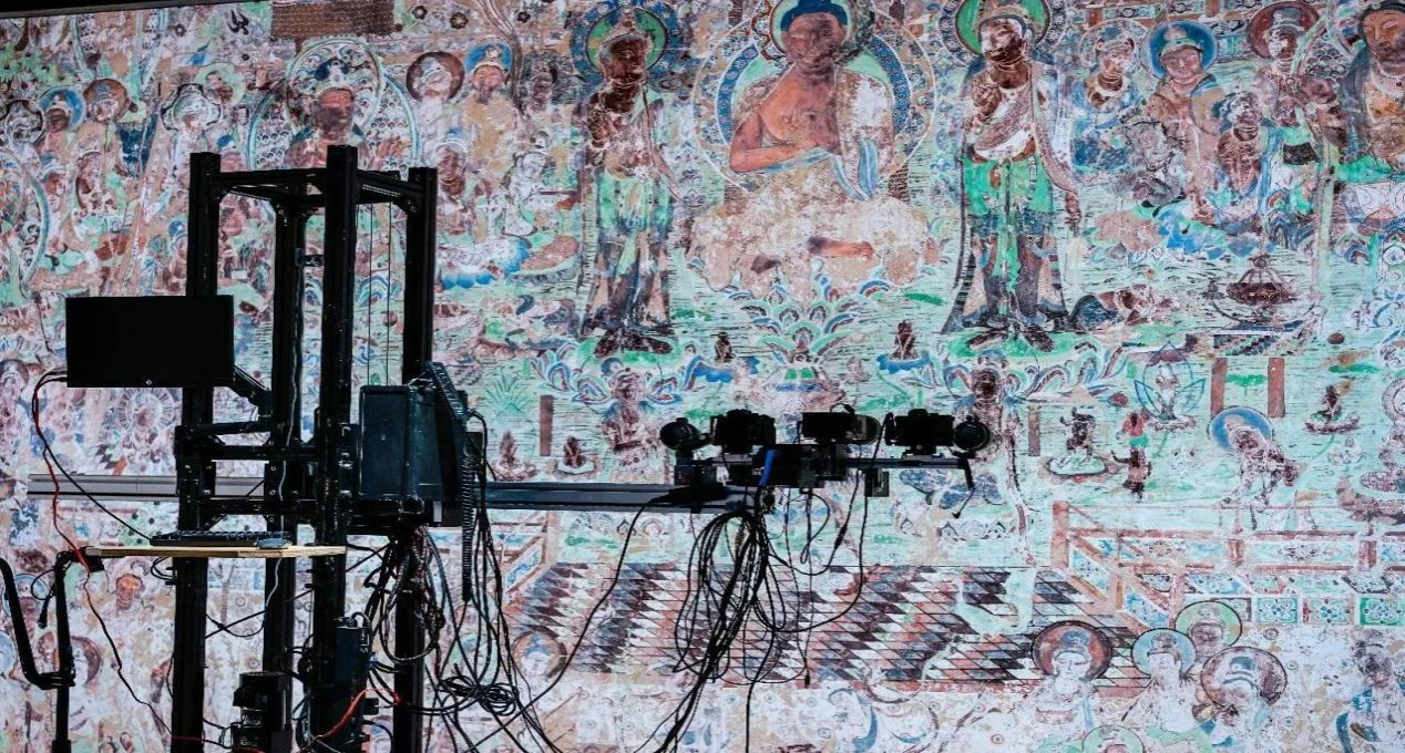 三峡文物科技保护基地是重庆中国三峡博物馆的组成部分,主要从事科学研究、文物保管、保护及修复、分析鉴别、教育培训及展示、文物保护装备研发等工作。一进展馆,支部书记陈璐就带领党员们先后参观了“世纪工程国家行动——三峡文物保护成果展”、“数字体验馆”、“再现光华——三峡文物科技保护基地科普展”等多个展厅,了解了展厅的功能布局和参观动线设计。与普通博物馆不同的是,三峡文物科技保护基地不仅利用各种高科技以超高水平的展现文物本身的魅力,她还向参观的党员同志们普及了文物修复者们如何在高新技术的赋能下更加高效高质地完成文物修复工作的以及各种高新文物装备,充分展示近年来我国文物保护技术装备领域的新技术、新产品、新应用、新业态。在参观过程中,党员们不仅学习了科普文教类展馆建筑设计的方法、内部展陈布局和现代数字技术与展览馆的结合,更是“穿越”晚唐、北宋、清末等历史时期,亲身“参与”厚重历史,现场体验全球首个“超时空参与式博物馆”的数字藏经洞,通过裸眼3D视觉等技术装备,走入故宫古建与文物藏品中的纹样世界,在多感数字艺术空间,画游《千里江山图》,感受声、光、影的交融,充分领略了中国建筑艺术的风采和特色。在数字技术赋能下,文物与现实世界实现有机交融,真正活了起来。