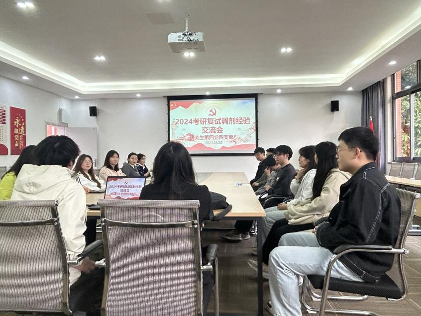 3月22日晚18:00,k1体育研究生第四党支部在田家炳406会议室开展考研复试、调剂经验分享活动。本次活动由研究生四支部统战委员何建主持,研究生张艳清、陈秋旭、束仁、王晓雪、赵丛丛受邀出席,公司部分2024届本科毕业生参加。