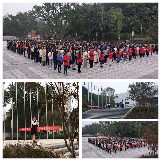 为了传承习近平总书记在党的十八大以来多次强调的“诚实守信”的中华民族传统美德,进一步培养经济学子“诚心做事,诚实做人”的价值观,2018年10月29日早上,公司党员服务站于校前广场举办了以“树诚信新风尚,做文明老员工”为主题的升旗仪式活动。