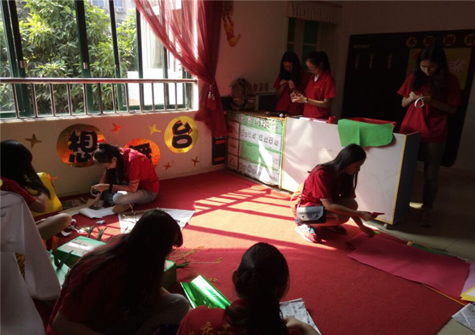 10月22日,北六党服的多名同学在课余时间前往k1体育十年品牌新村幼儿园为小朋友们精心准备第二天“虚拟餐厅”课堂活动使用到的一些手工作品,通过自己的简单劳动为小朋友的课堂增添趣味。