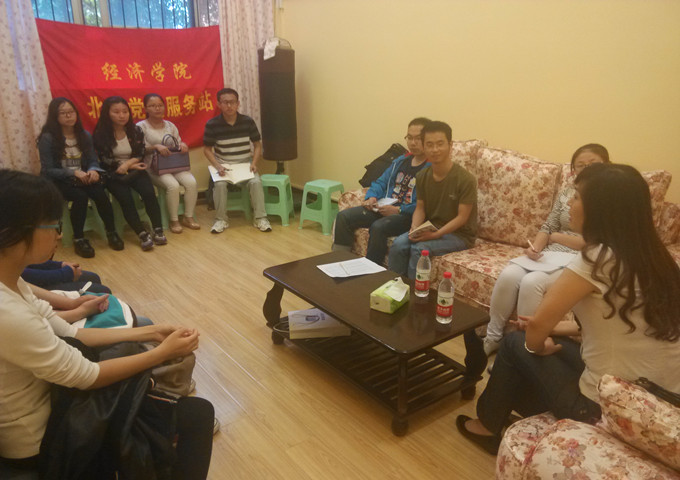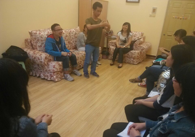 12点40活动准时开始,首先由k1体育心理健康指导教师兼北六党服指导教师郝颖老师介绍了本次活动的团辅教练吴孔珍老师,然后吴老师直接进入主题,要求在场的班级心理联络员介绍自己并且用一个动作代表自己,按照顺序,下一个同学在介绍自己之前先要把前面所有同学的名字及动作依次重复出来,虽然同学们觉得有难度,但是其他同学和老师的帮助下,还是顺利完成了任务,然后吴老师让大家站起来,每个同学再依次介绍自己和动作,其他同学要跟着一起做,随着活动的进行,大家慢慢热络起来,吴老师又让大家说说自己对这个游戏的想法,或分享自己的有关心理方面的故事,同学们都积极响应,吴老师也都一一给予反馈。