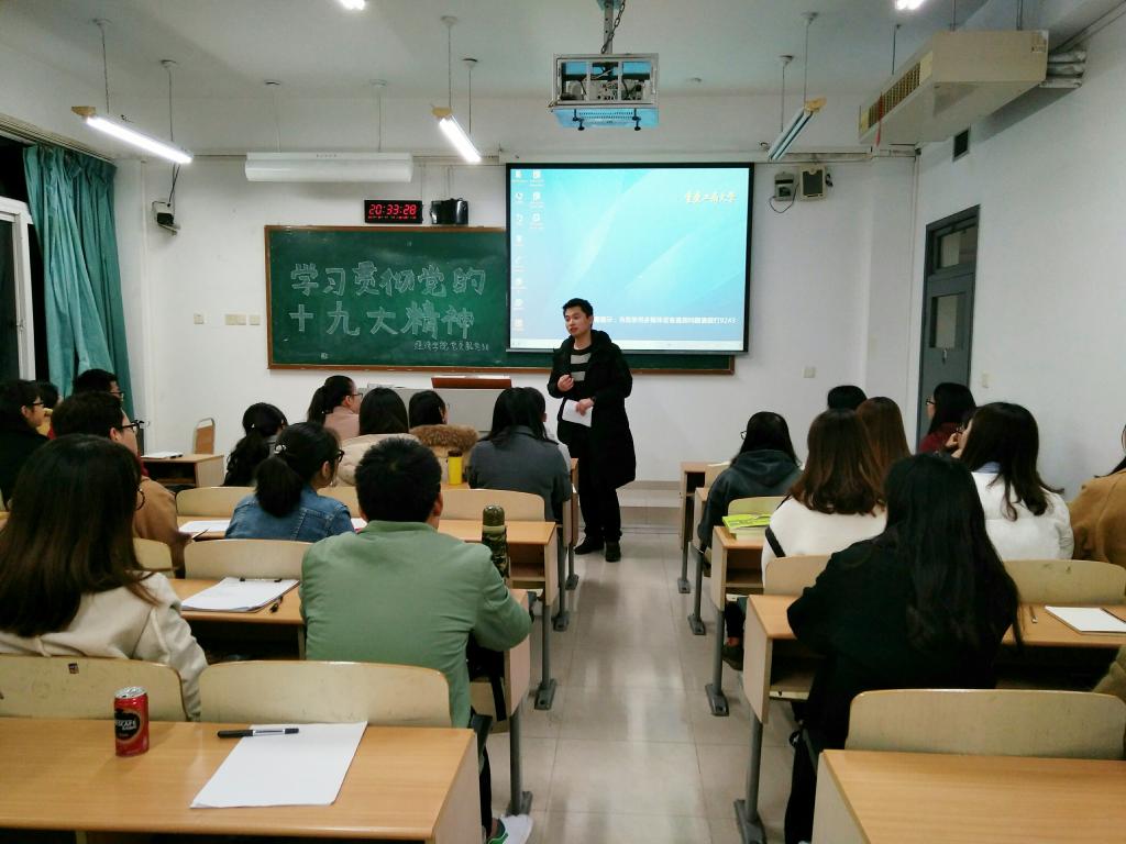 2017年12月7日,公司教工支部书记张弛老师走进课堂,为k1体育部分党员员工和积极分子宣讲19大精神。党课在南岸校区博智楼7209教室举行,k1体育分党委组织委员郝颖老师参加了本次政治学习活动。