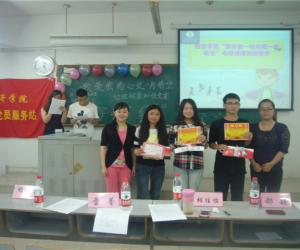 最后,嘉宾给获奖同学们进行颁奖并合影留念。到此活动圆满结束,此次比赛既加深了同学们对心理健康知识的认识,又在比赛中促进了交流,增进了感情。