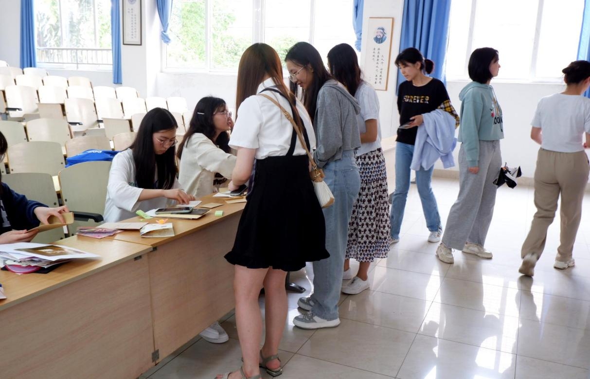 本次活动共有三个环节。首先,站员们观看了人民教师张桂梅的相关纪录片。观影结束后,站员们将此前精心准备的贺卡拍照留念并上传至活动小程序进行分享。随后,工作人员收集整理提交贺卡并发起投票。根据贺卡内容的丰富度、外观的精美度等评判标准,站员们将自己宝贵的票数投给了最心仪的那张贺卡。最终筛选出了本次活动的前三名,他们分别是来自20级经济学三班的许茹冰、20级财政学硕士班的陈娟、20级贸经二班的张学莉与谢妍。