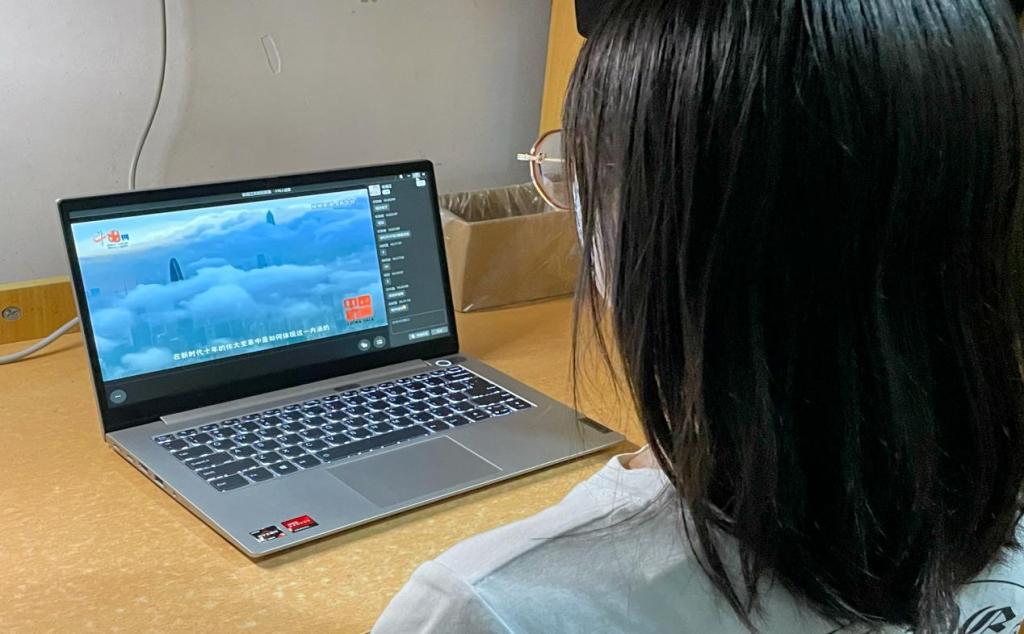 (图为站员观看活动视频,王若曦摄)